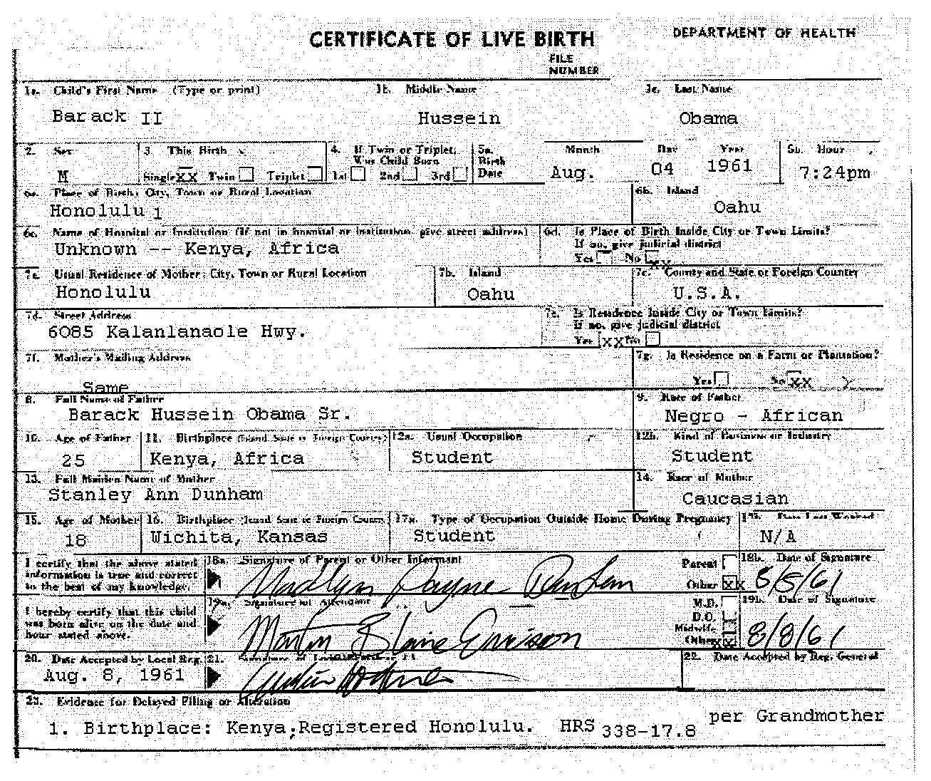 The Internet publication of Obama’s Hawaiian Certification of Live Birth puzzled me, and I believe I was the first to discover the Hawaiian statutes, Haw. Stat. Rev. § 338-17.8 and 338-5 that permitted a Kenyan-born Obama, Jr. to have his birth registered in Hawaii.