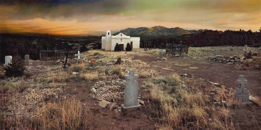 The color balance was a tedious task. I struggled to capture what the church looked like at night, just as the sun was striking the clouds with the typical ‘salmon’ color. The hours paid off . . . the image is so realistic that sometimes you think you are looking through a window at the real thing. Most people mistake the photo for a painting, such is the drama of the lighting and the way I kissed the grasses with light, and subtly put emphasis on the center grave marker. That adds a third dimension to the photo, a feeling of 3-D so to speak.